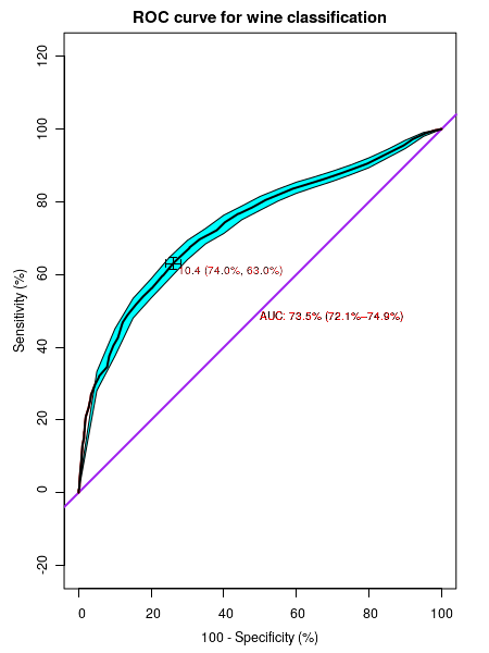 the sensitivities and specificities.For the above mentioned data file "white_wine_data.csv",